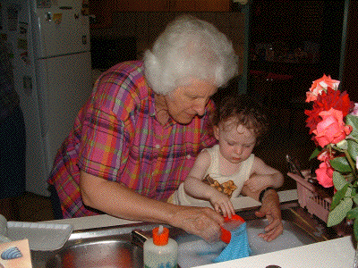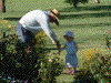 The garden is Poppa's domain, so Lucy went to help him patrol and look after it.