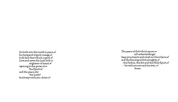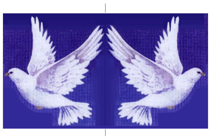 | DOVES | We have a dark blue curtain on the wall behind the altar; we decorated it with a number ( twentyish ? ) of pictures of doves in flight. It's not mentioned in the service, so not necessary; we thought it reinforced the "peace" message. |