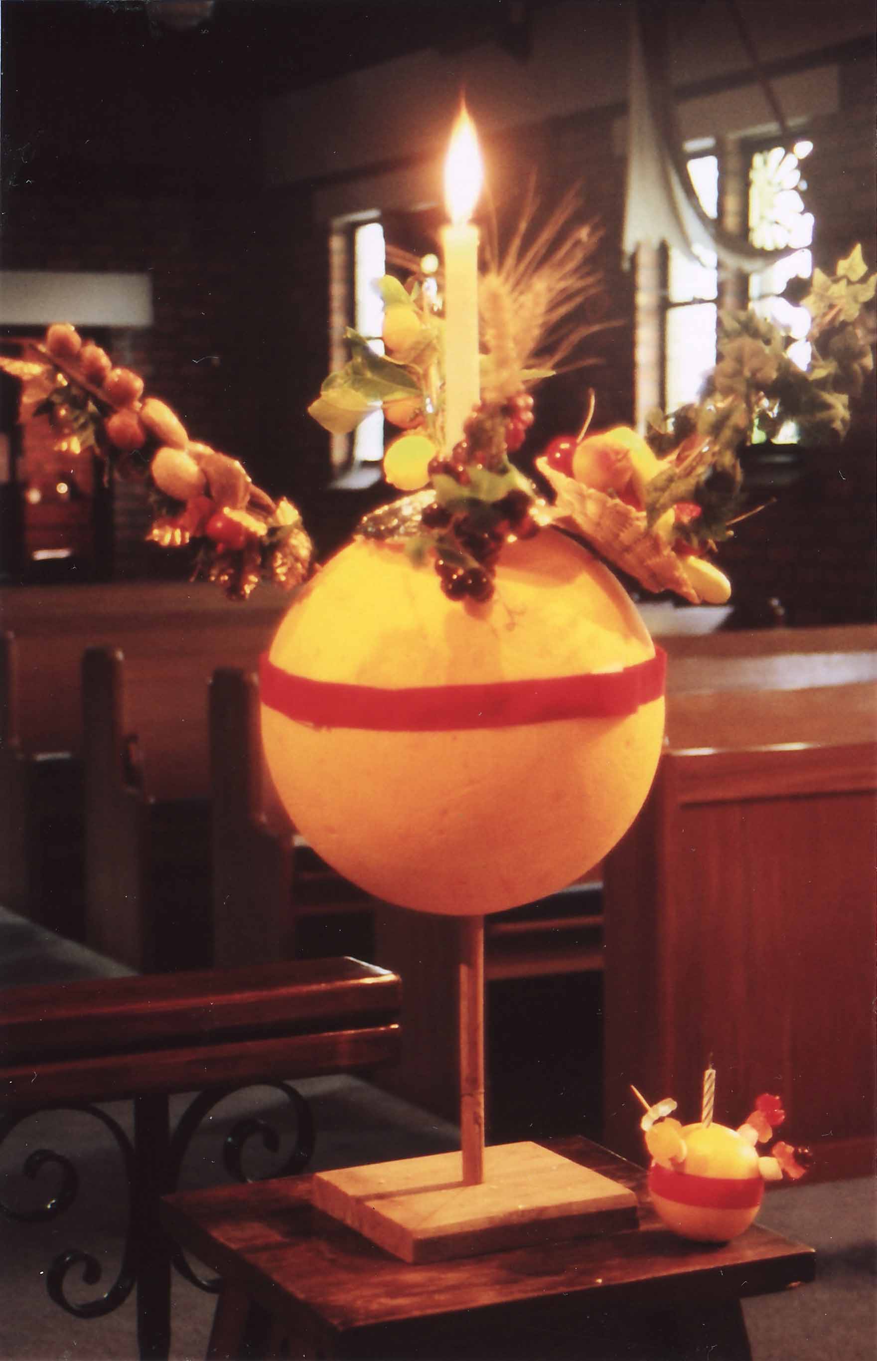 After running our Christingle services for a couple of years, it became clear that our attempts to demonstrate ( for example ) the construction of the Christingle using a real orange were less than successful, simply because the orange was too small to be seen for the majority of the congregation.