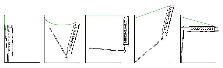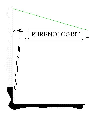 We wanted something like a shop sign for part of a service. It should be an overhead sign of conspicuous size, with a title ( in our case, "PHRENOLOGIST" ) displayed clearly. However, it should also be present for just a short segment of the service, and not entail any significant sceneshifting activity.