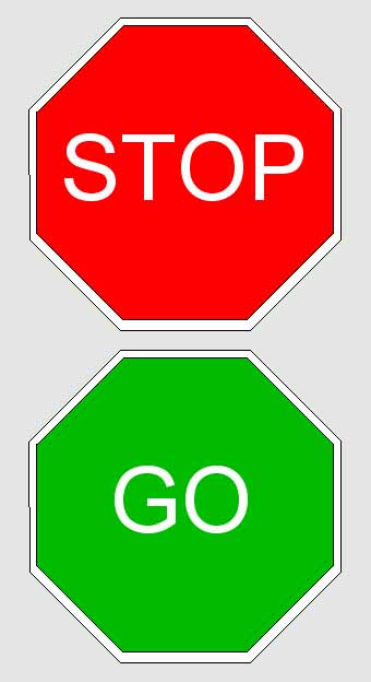 We have had several occasions for calling a sudden halt to events in our services, and the obvious way to do so was to use something like the STOP sign familiar on New Zealand roads. It happened that on the first such occasion we also wanted a corresponding GO sign, so we constructed a double-sided version in the obvious way.